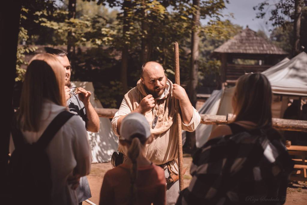 - prelekcje historyczne z oprowadzaniem po obozowisku