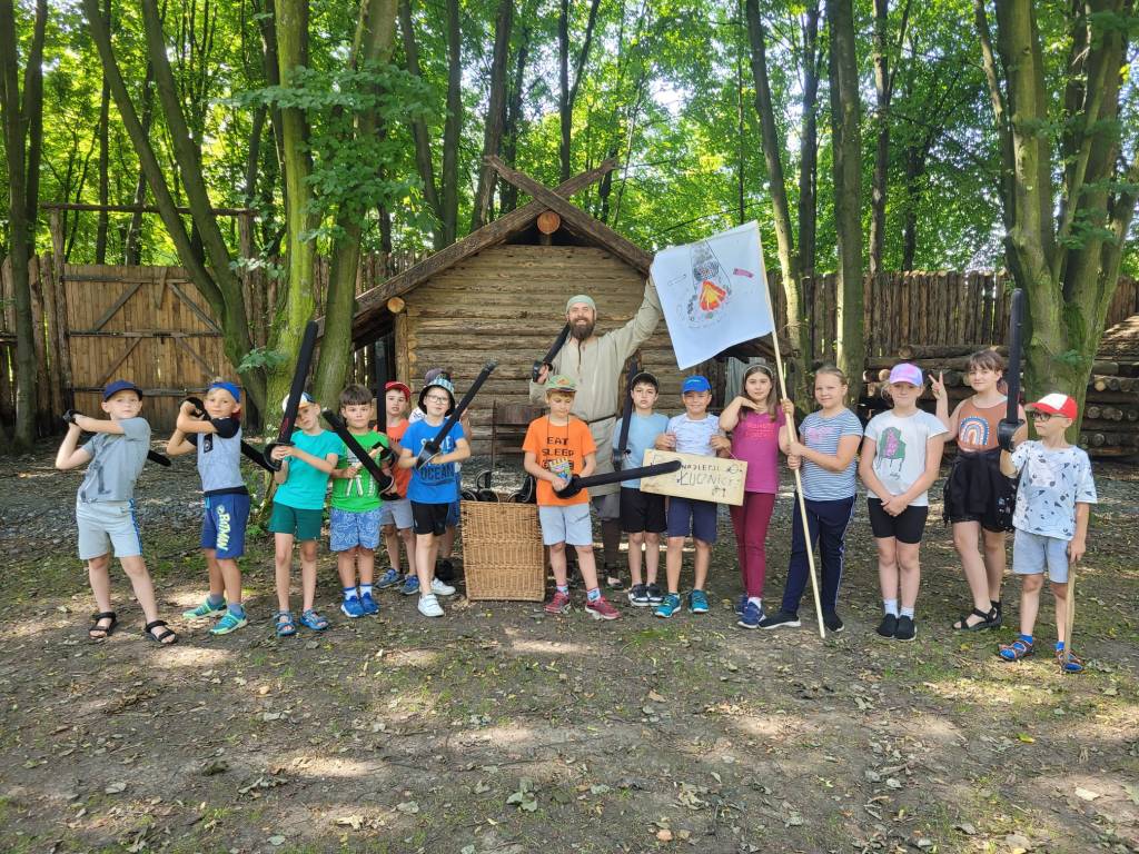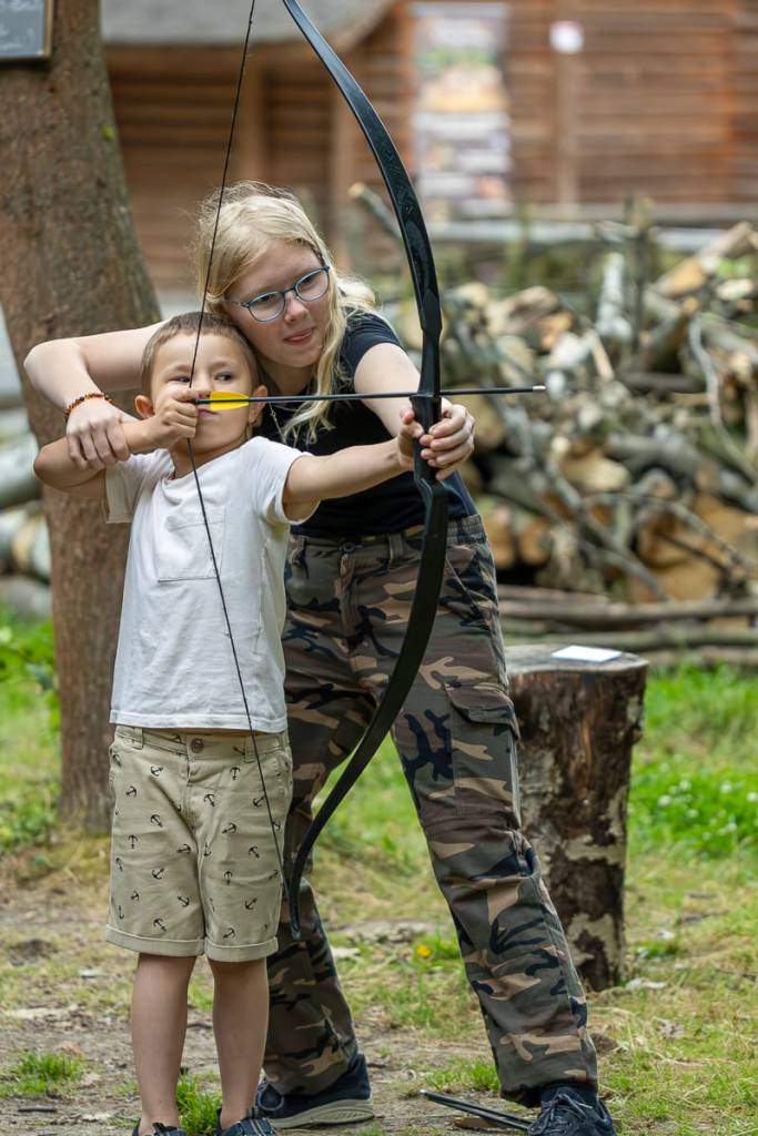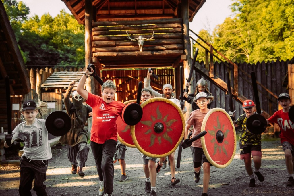 - Animacje dla dzieci – 100 zł. Dzieci stoczą walkę na miecze, sprawdzą swoją celność przy łukach. Spróbują swoich sił przy przeciąganiu liny, zagrają w kulki. W programie: Gra terenowa „ Śladem Dziewanny”. Wyjście w nocy do lasu Arboretum. Wspólna gra terenowa „ Gród i jego obrońcy”. Budowa grodziska z drewnianych klocków. Obrona grodu przed najeźdźcami, rozwiązywanie zagadek.
